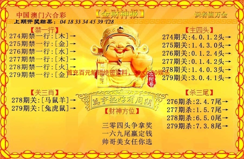 275期:☀吉凶中特☀【吉美】开:鸡45中 |